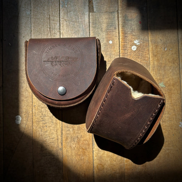 Inside, a soft natural sheepskin lining cushions your reel with organic warmth, while the smart dual-snap design secures it effortlessly—whether on or off your rod. Every detail reflects a commitment to durability, heritage and timeless style.
