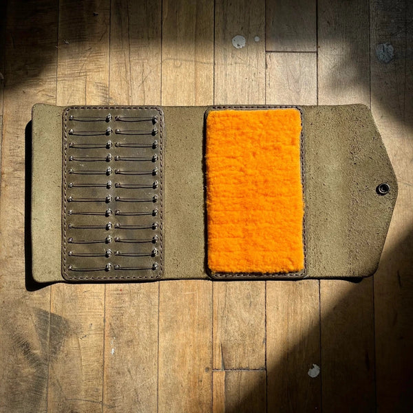 This one of a kind fly wallet was handcrafted in Montreal using premium Sepici MAD OLIVE leather.