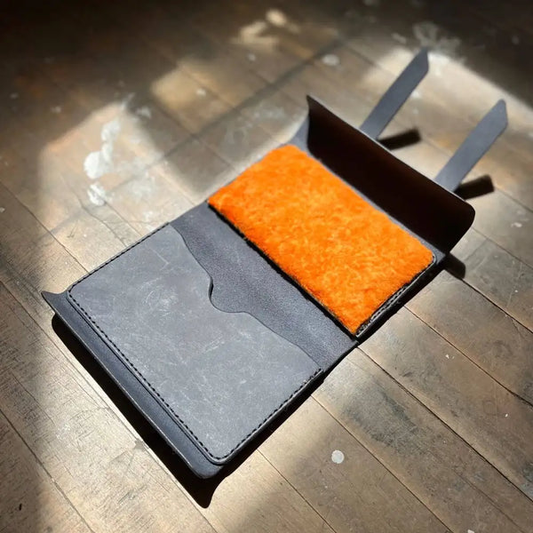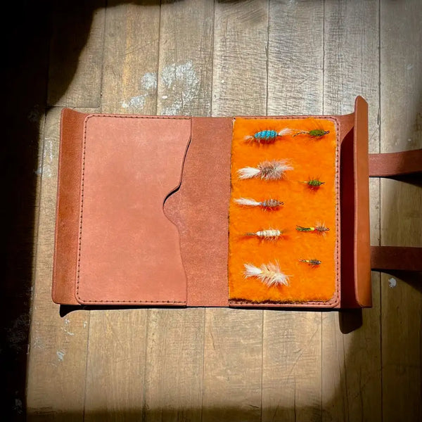 Designed specifically for Bombers and Bugs, this fly wallet offers superior protection, keeping your flies safe from crushing while allowing them to air dry. Made from veg-tanned leather, a natural way to process leather, this wallet only gets better with time, developing a beautiful patina. The interior is lined with premium natural golden sheepskin that will hold and dry your flies without rusting the hook.